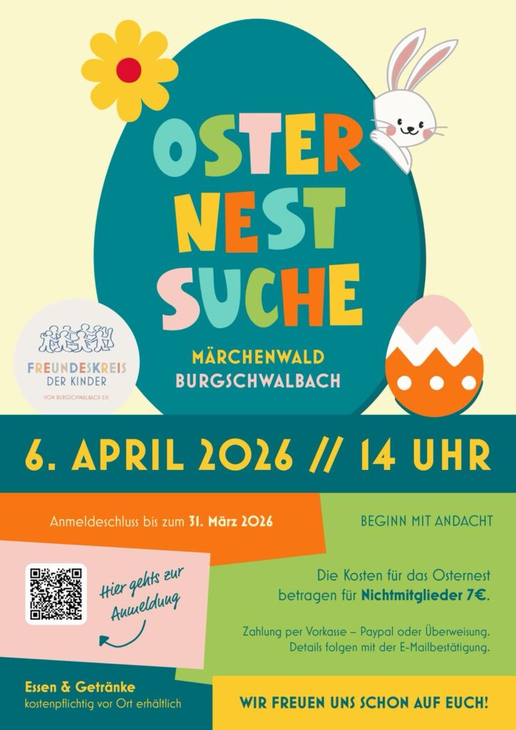 Am Ostermontag, 6. April 2026, lädt der Freundeskreis der Kinder Burgschwalbach e.V. herzlich zur Osternestsuche in den Märchenwald Burgschwalbach ein.